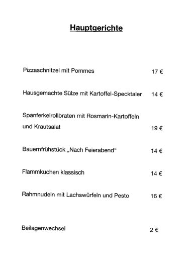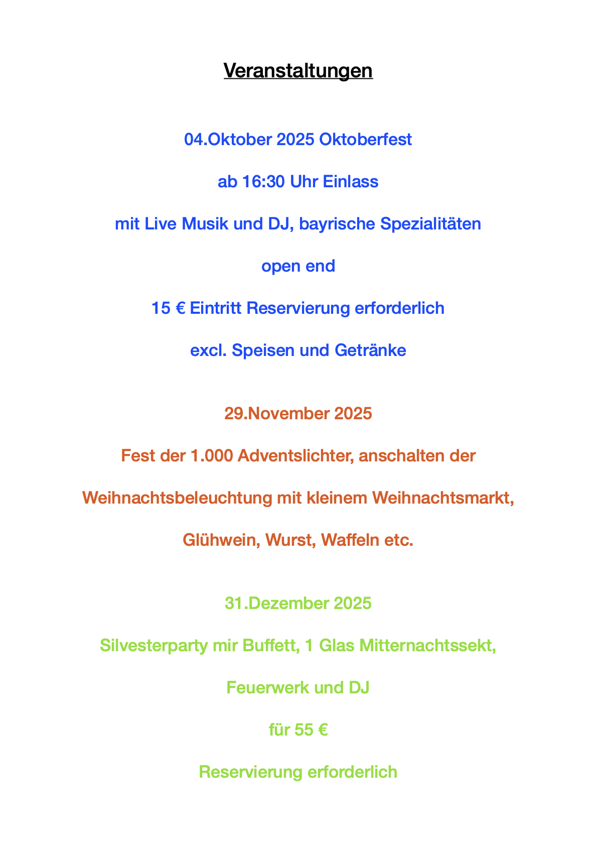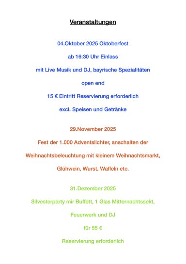Entdecken Sie unsere umfangreiche Speisekarte, die von traditioneller deutscher Küche bis hin zu modernen europäischen Gerichten reicht. Wir bieten für jeden Geschmack etwas an und legen großen Wert auf frische Zutaten und saisonale Spezialitäten. Genießen Sie ein kulinarisches Erlebnis, das die Tradition mit zeitgenössischen Aromen vereint. Ob deftige Klassikern oder kreative Neuinterpretationen – in unserer Gaststätte finden Sie alles, was das Herz begehrt. Lassen Sie sich von unseren Spezialitäten verwöhnen und erleben Sie die Vielfalt der deutschen und europäischen Küche in einem einladenden Ambiente.